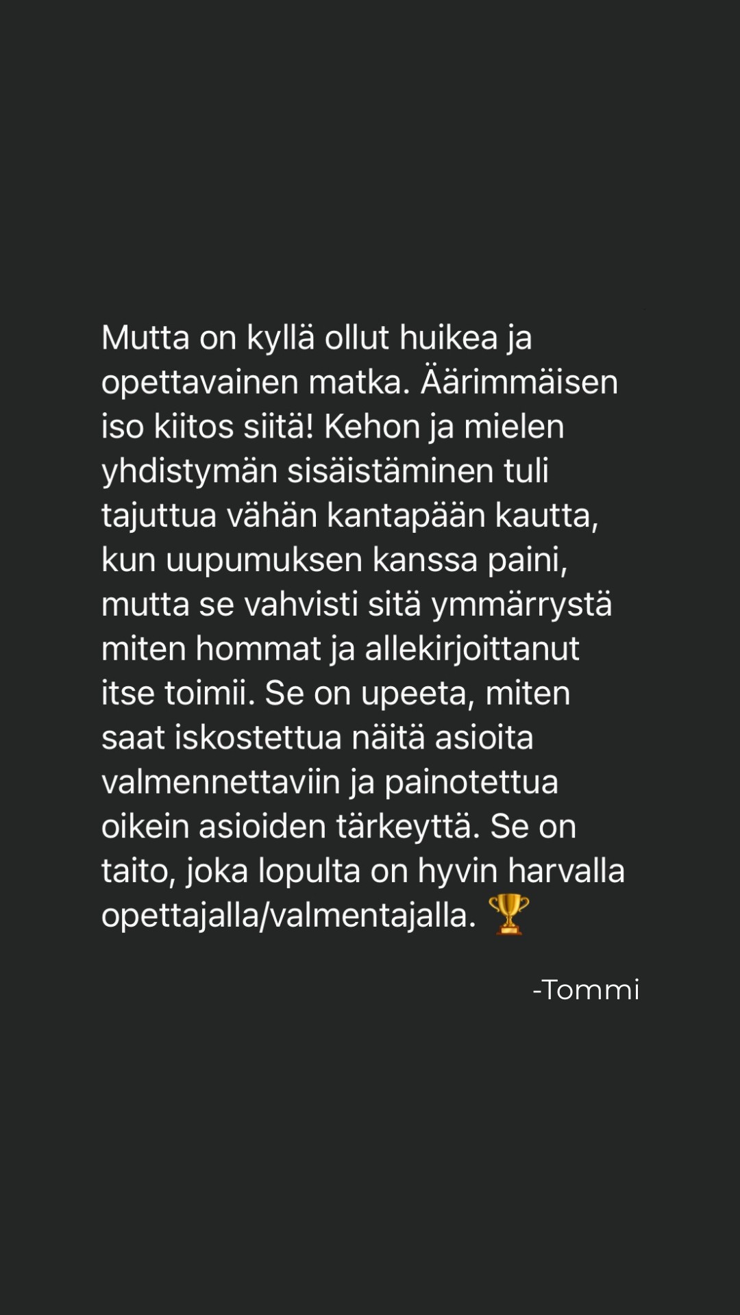Yhteinen valmennusmatka alkaa. Lähdetään tekemään tuloksia yhdessä!