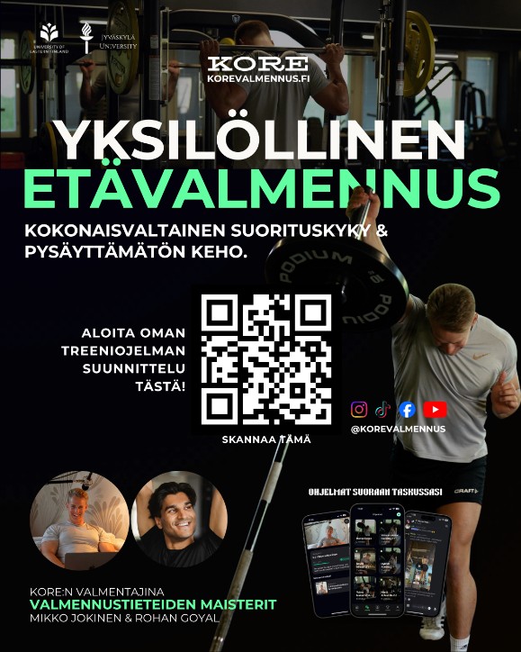 Mikko Jokinen on yksi KORE valmennuksen perustajista, valmennustieteiden maisteri (LitM) ja ravitsemustieteilijä. Mikko on toiminut yli 14 vuoden ajan ammattivalmentajana ja auttanut tavoitteellisia treenaajia sekä huippu-urheilijoita maksimoimaan suorituskykyään. Hän on erityisesti perehtynyt urheiluravitsemukseen ja kokonaisvaltaiseen atleettiseen harjoitteluun.